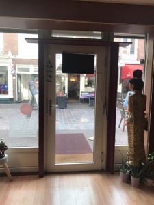 ผมจึงได้คำนวณ และออกแบบให้ปรับองศาของประตูร้าน โดยการทำซุ้มประตู แต่เนื่องด้วยกฎหมายของประเทศนั้น ที่ห้ามไม่ให้ปรับเปลี่ยนโครงสร้างใด ๆ ภายนอกตัวอาคารได้ ผมจึงได้ออกแบบทำซุ้มประตูปรับองศา ที่ภายในร้านหลังประตูทางเข้า เพื่อที่จะนำพาพลังงานที่ดีเข้ามาหล่อเลี้ยงภายในร้าน และได้ทำการเลือกของที่ใช้ในการตกแต่งร้าน ในแต่ละมุม เพื่อกระตุ้นโชคลาภ และสร้างวงจรพลังงานใหม่ ตามองศาที่ได้คำนวณไว้